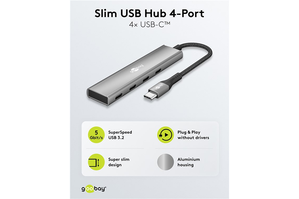 4-port USB hub slim med kabel (USB-C, 5 Gbit/s) GB-76564: 4-port USB hub slim med kabel (USB-C, 5 Gbit/s)