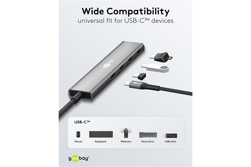 • Udvider én USB-C™ port til 4 USB-C™ porte