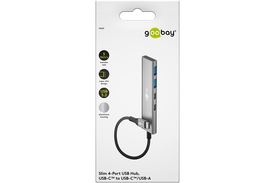4-port USB hub slim med kabel (2x USB-C, 2x USB-A, 5 Gbit/s) GB-76563: 4-port USB hub slim med kabel (2x USB-C, 2x USB-A, 5 Gbit/s)