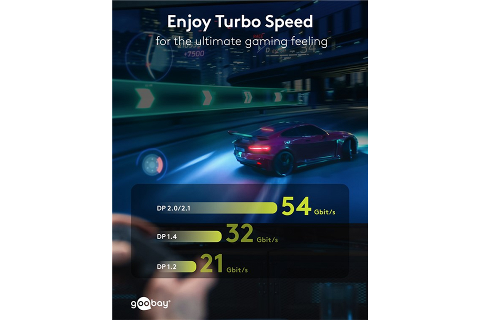 DisplayPort™ 2.0/2.1 kablet leverer den ultimative billedoplevelse til dig, der stiller høje krav til opløsning, billedhastighed og farvegengivelse. Med understøttelse af 8K ved 144 Hz og 4K ved op til 240 Hz er det ideelt til gaming i højeste kvalitet, VR, og streaming i biografniveau. Kablet er kompatibelt med både G-Sync og FreeSync og sikrer dermed flydende og lag-fri grafik i selv de mest krævende spil.