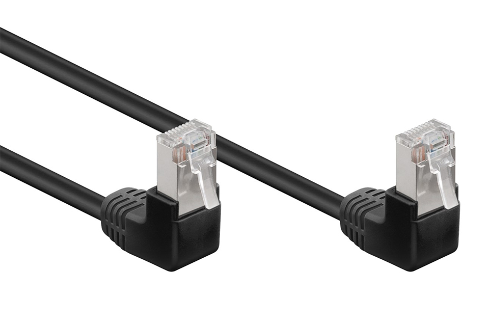 Højdepunkter:• Skærmet CAT 5e netværkskabel med folieskærm (F/UTP)• Begge RJ45-stik er vinklet i 90° for optimal pladsudnyttelse • Velegnet til trange installationer og vægmontering • Guldforgyldte kontakter sikrer stabil og hurtig forbindelse • Kvalitetsleder i CCA med snoede ledere for minimal signaltab • Med støbt bøjebeskyttelse i slankt design • Par-sekvens efter EIA/TIA 568B-standard Stabilt vinklet netværkskabel til krævende installationer:Dette CAT 5e patchkabel med 90° vinklet RJ45-stik i begge ender er designet til steder med begrænset plads, hvor traditionelle stik ikke passer. Det er ideelt til montering tæt på vægge, bag møbler eller i skabe, hvor et lige stik vil blive bøjet og udsat for unødvendig slitage. Med sin robuste PVC-kappe og bøjebeskyttelse i begge ender, er det både holdbart og fleksibelt i brug.Effektiv signaloverførsel med minimal interferens:Kablet er skærmet med en indvendig aluminiumsfolie (F/UTP), som reducerer krydstale og beskytter mod elektromagnetiske forstyrrelser. Dette sikrer en mere stabil og ren signaloverførsel, selv i miljøer med meget elektronik. De guldforgyldte kontakter og CCA-indvendige ledere garanterer desuden høj ydeevne og lavt signaltab, hvilket gør kablet perfekt til både hjemmenetværk og professionelle installationer.Specifications:• Kabeltype: Rundt netværkskabel• Specifikation: CAT 5e • Skærmning: F/UTP (aluminiumsfolie) • Stiktype: 2x RJ45 han 90° (8P8C) • Kontaktstandard: EIA/TIA-568 B • Leder: CCA (kobberbelagt aluminium), AWG 26/7 • Bøjebeskyttelse: Begge ender • Ingen låsebeskyttelse • Kappemateriale: PVC • Farve: Sort • Maks. båndbredde: 100 MHz • Driftstemperatur: -20 °C til 60 °C • Skærmningsklasse: 1x folie • Kabeldiameter: ca. 5,4 mm Produktanmeldelser og links