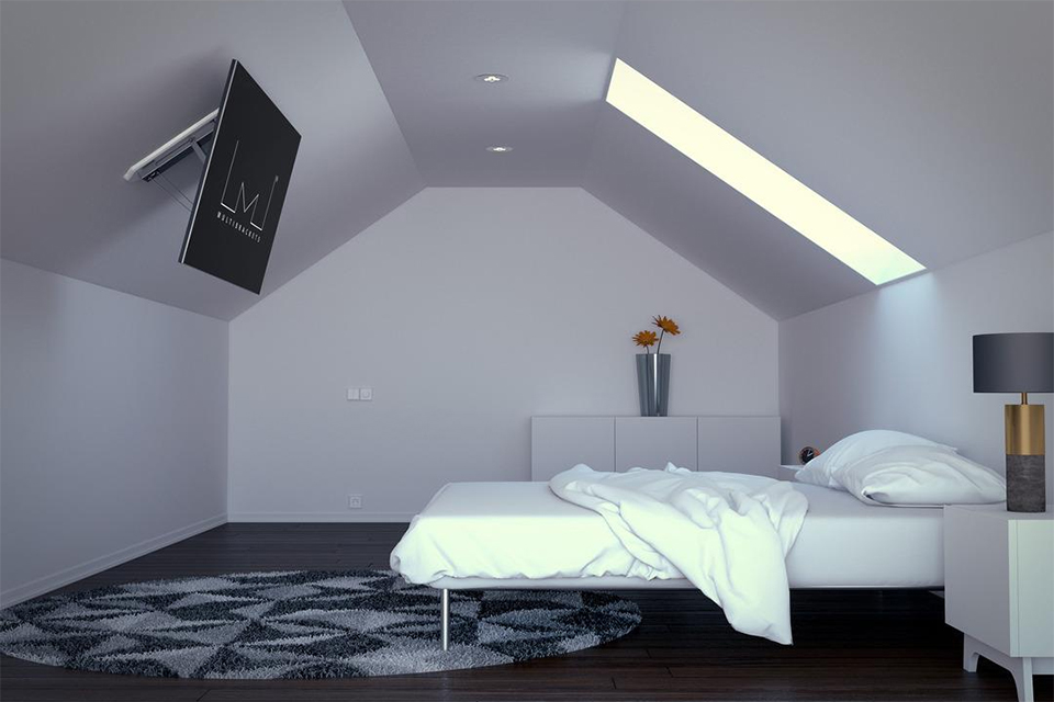 Denne motoriserede loftbeslag er ideel, når du ønsker at gemme dit TV væk, men stadig have nem adgang til det. Med et enkelt tryk på fjernbetjeningen folder beslaget skærmen ned fra loftet eller underskabet i en vinkel på op til 75°. Det gør den perfekt til steder, hvor pladsen er begrænset, eller hvor TV’et kun skal bruges lejlighedsvis. Det diskrete design kombineret med en pålidelig motor gør dette beslag til et stilrent og funktionelt valg.