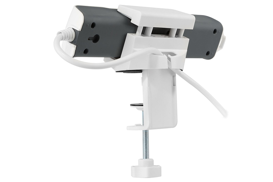 Nem montering af stikdåse på bordkant med justerbar klemme, passer til 40-60 mm stikdåser og 10-50 mm bordtykkelse, med indbygget kabelhåndtering.