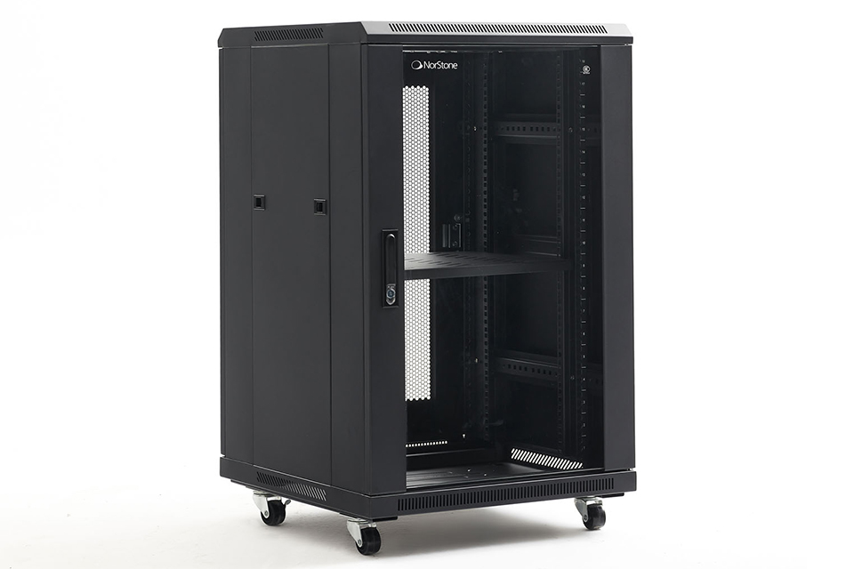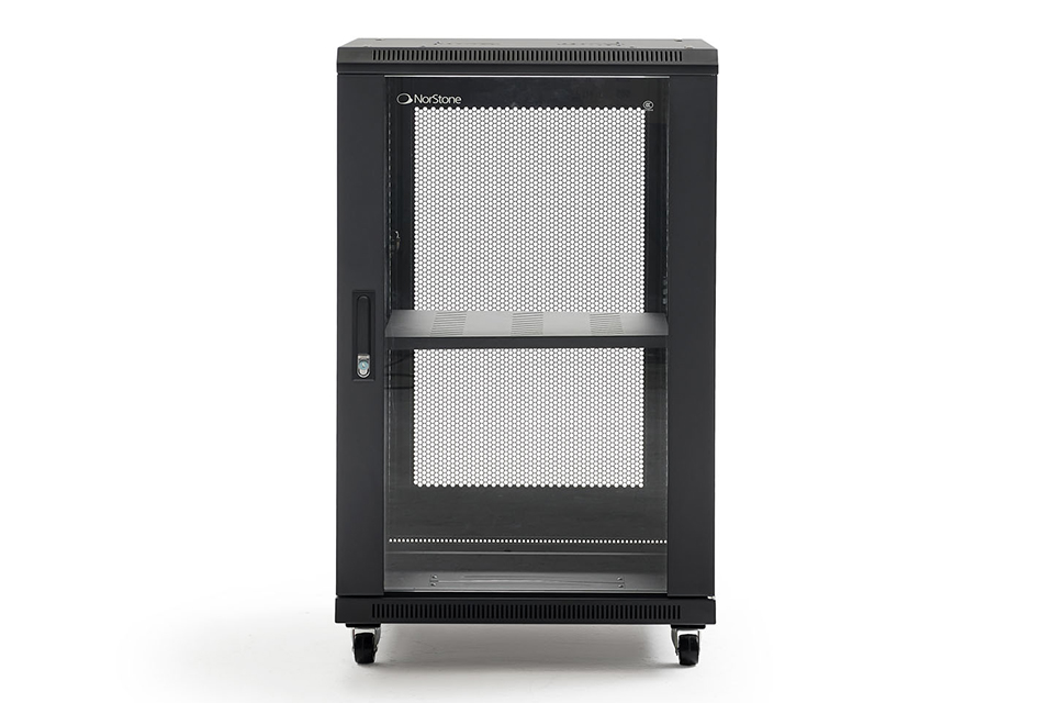 Højdepunkter:• Plads til op til 18 enheder af 19” udstyr• Indbyggede topventiler med 2 køleventilatorer • Inkluderer 80 mm hjul og justerbare fødder • Aftagelige sider for nem installation og kabelhåndtering • Justerbare front- og bagprofiler op til 540 mm dybde • Hærdet glaslåge med nøglelås og sommerfuglehåndtag • Vendbar låge for fleksibel adgang Robust rackskab til professionelt udstyr:Dette rackskab er skabt til dig, der har brug for en pålidelig og fleksibel løsning til opbevaring af op til 18 enheder af 19” udstyr. Med aftagelige sider, justerbare front- og bagprofiler og en maksimal brugbar dybde på 540 mm, er det både let at tilpasse og hurtigt at installere. Skabets hærdede glaslåge med nøglelås giver sikker adgang, mens den vendbare låge gør det muligt at vælge åbneretning efter behov.Ventilation og mobilitet i topklasse:Toppen af skabet er udstyret med ventilationsgitre og to integrerede køleventilatorer, der effektivt holder udstyret køligt under drift. Derudover har skabet en ventileret bagdør, som sikrer optimal luftcirkulation. Med 80 mm hjul og justerbare fødder er skabet nemt at flytte og stabilisere på plads, uanset hvor det skal stå. Dette gør det perfekt til både serverrum, AV-installationer og professionelle netværksmiljøer.Specifications:• Kapacitet: 18 enheder af 19” udstyr• Maks. brugbar dybde: 540 mm • Ydre mål (H x B x D): 985 x 600 x 600 mm • Hjul: 80 mm, inkl. justerbare fødder • Ventilation: 2 integrerede ventilatorer i top • Låge: Hærdet glas med nøglelås og sommerfuglehåndtag • Lågeretning: Vendbar • Justerbare 19” profiler foran og bagpå • Ventileret bagdør Produktanmeldelser og links