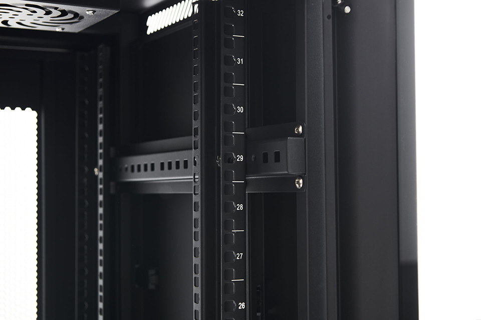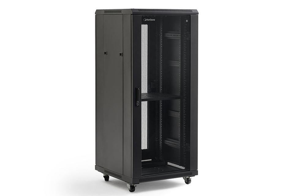 Højdepunkter:• Plads til op til 27 enheder på 19”• Integrerede ventilatorer for optimal køling • Låse på både front- og bagdør for ekstra sikkerhed • Aftagelige sidepaneler for nem installation og kabelføring • Justerbare 19” profiler i dybden op til 540 mm • Hærdet glasdør med vendbar åbning • Inkluderer hjul og justerbare fødder Fleksibel opbevaring af netværks- og serverudstyr:Dette 19” rackskab med plads til op til 27 units er ideelt til opbevaring af netværks-, server- og AV-udstyr. Det er udstyret med både for- og baglåse, så dit udstyr altid er sikkert. De aftagelige sidepaneler gør installation og kabelføring enkel og tidsbesparende. Med hærdet glasdør og mulighed for at vende åbningen får du fleksibilitet, uanset hvordan skabet placeres. Det robuste design kombinerer holdbarhed med et professionelt udseende, der passer ind i både kontor- og servermiljøer.Optimeret ventilation og tilpasning:For at sikre optimal driftstemperatur er skabet udstyret med to topmonterede ventilatorer samt en ventileret bagdør. De justerbare 19” profiler kan indstilles op til 540 mm i dybden, hvilket giver plads til forskellige typer udstyr. Skabet leveres med både hjul og justerbare fødder, så det nemt kan flyttes og stabiliseres efter behov. De kvadratiske, stansede huller gør montering med snap-in burmøtrikker hurtig og nem, hvilket sparer tid under installation.Specifications:• Kapacitet: 27 units (19”)• Maks. brugbar dybde: 540 mm • Højde: 1305 mm • Højde inkl. hjul: 1385 mm • Bredde: 600 mm • Dybde: 600 mm • Materiale: Hærdet glasdør og stålkonstruktion • Ventilation: 2 integrerede topventilatorer • Justerbare 19” profiler foran og bagpå • Inkluderer: 80 mm hjul og nivelleringsfødder • Låsesystem: Nøglelås foran og bagpå • Vendbar døråbning • Aftagelige sidepaneler Produktanmeldelser og links