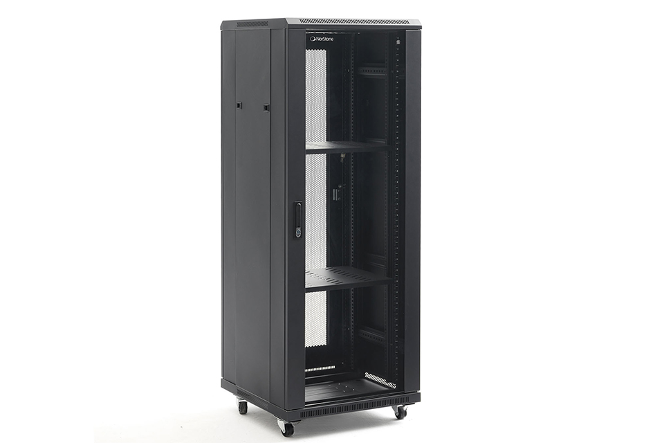 Højdepunkter:• Plads til op til 32 enheder i 19” format• Tempereret glasdør med nøglelås og butterfly-håndtag • Justerbare 19” profiler i både front og bag (op til 540 mm) • Integrerede topmonterede ventilatorer for optimal køling • Aftagelige sider for nem installation og kabelføring • Leveres med hjul og justerbare fødder • Vendbar dørposition for fleksibel placering Solid opbevaringsløsning til professionelt rack-udstyr:Denne 32-enheders 19” rackskabsløsning er designet til at give maksimal funktionalitet og fleksibilitet til professionelle installationer. Med et robust design og tempereret glasdør får du både sikkerhed og et elegant udtryk. Den vendbare dør gør det muligt at tilpasse placeringen, mens nøglelåsen sikrer, at kun autoriseret personale får adgang. Toppen af skabet er udstyret med ventilationsgitre og to integrerede blæsere, som sikrer effektiv køling af udstyret. De aftagelige sidepaneler gør det hurtigt og nemt at installere og omkoble kabler, hvilket sparer tid ved både opsætning og vedligeholdelse.Fleksibel og praktisk konstruktion:Skabets front- og bagprofiler kan justeres i dybden op til 540 mm, hvilket giver fleksibilitet til forskellige typer udstyr. Derudover er der inkluderet 80 mm hjul samt justerbare fødder, så skabet kan flyttes eller stå stabilt afhængigt af behovet. De firkantede udstansede huller passer til snap-in burmøtrikker, hvilket gør montering af udstyr nemmere og mere stabilt.Specifications:• Kapacitet: 32 enheder (19”)• Maks. anvendelig dybde: 540 mm • Ydre mål: 1530 mm (H) x 600 mm (B) x 600 mm (D) • Justerbare 19” profiler foran og bagpå • Tempereret glasdør med nøglelås og butterfly-håndtag • Ventilationsgitre med 2 integrerede ventilatorer • Aftagelige sidepaneler • 80 mm hjul og justerbare fødder • Vendbar dørposition • Firkantede huller til snap-in burmøtrikker Produktanmeldelser og links