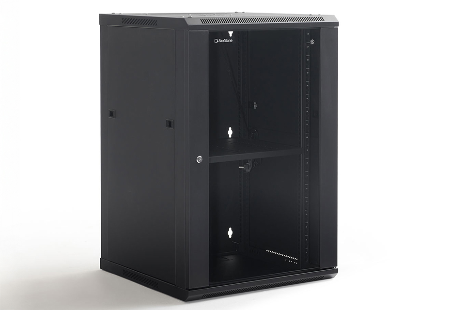 Højdepunkter:• Plads til op til 18 enheder i 19” format• Ventilationsrist med indbygget ventilator i toppen • Aftagelige sidepaneler for nem installation og kabelføring • Justerbare 19” profiler med op til 540 mm dybde • Kabelgennemføringer i top, bund og bag, som kan lukkes • Hærdet glasdør med nøglelås for sikkerhed Robust vægmonteret rackskab til professionelt udstyr:Dette vægmonterede rackskab er designet til sikker og effektiv opbevaring af op til 18 enheder i standard 19” format. Med en robust konstruktion i metal og en stilren satin sort finish passer skabet perfekt ind i både tekniske rum og professionelle installationsmiljøer. Den topmonterede ventilationsrist med indbygget ventilator sikrer optimal luftcirkulation, så dit udstyr forbliver køligt under drift. Aftagelige sidepaneler gør installation og kabelføring hurtig og enkel, mens de justerbare 19” profiler giver fleksibilitet til forskellige enhedsdybder op til 540 mm. Den hærdede glasdør med nøglelås beskytter mod uautoriseret adgang, samtidig med at du kan holde øje med udstyret uden at åbne døren. Kabelgennemføringer i top, bund og bag kan lukkes efter behov, så kabelføringen fremstår organiseret og professionel.Specifications:• Materiale: Metal• Farve: Satin sort • Enhedshøjde: 18 U • Ventilator: 1 stk. (topmonteret) • Fast hylde: 1 stk. • Dimensioner (B x H x D): 600 x 905 x 600 mm • Maks. anvendelig dybde: 540 mm • Nettovægt: 31,6 kg • Leveres usamlet med skruer, monteringsvejledning og værktøj • Pakningsmål (B x H x D): 660 x 250 x 955 mm • Bruttovægt: 33,8 kg Produktanmeldelser og links