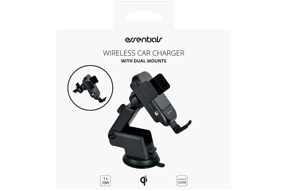 Essentials trådløse biloplader gør det nemt og sikkert at oplade din mobil, mens du er på farten. Med en trådløs opladningseffekt på op til 10 watt kan du holde din telefon opladet uden besvær. Opladeren er designet med en smart automatisk åbne- og lukkefunktion, så du nemt kan placere mobilen i holderen. Et langt tryk på sideknappen åbner og lukker holderen, hvilket giver ekstra fleksibilitet og brugervenlighed.