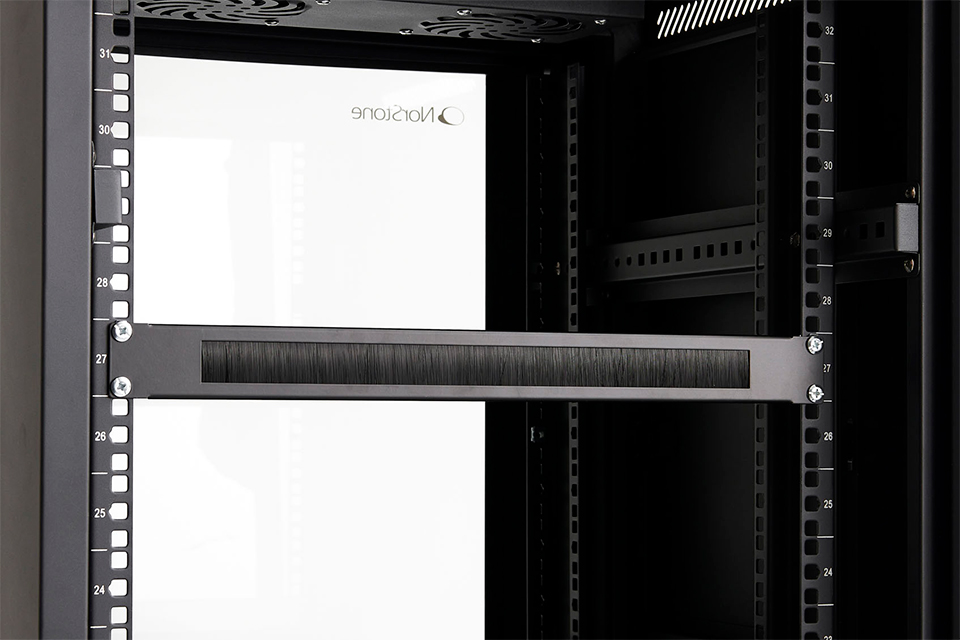 Højdepunkter:• Praktisk kabelgennemføring til 19" rack• Nylonbørste beskytter mod støv og varme • Nem organisering af kabler på fronten • Robust metalramme i sort finish • Giver et professionelt og ryddeligt look Effektiv kabelstyring med støvbeskyttelse:NorStone Pro kabelgennemføring med børste er en enkel og professionel løsning til at føre kabler ind og ud af dit rack. Den fleksible nylonbørste lukker tæt omkring kablerne, hvilket effektivt beskytter mod støv og varme, samtidig med at den bevarer en flot og organiseret front. Den solide metalramme giver holdbarhed og stabilitet, mens den sorte finish sikrer et elegant udtryk, der passer perfekt ind i både studie, serverrum og AV-installationer. Med denne løsning slipper du for åbne porte og rodede kabelføringer, og du får i stedet et rent og overskueligt rack.Del af NorStone Pro-serien:Som en del af NorStone Pro-serien er denne kabelgennemføring udviklet til at matche seriens racks og tilbehør. Serien byder på et bredt udvalg af gulvstående og væghængte racks samt praktiske løsninger som hylder, strømfordelere og kabelstyring. Det gør det nemt at sammensætte en komplet, professionel installation, hvor alle detaljer er gennemtænkt. Kabelgennemføringen med børste er derfor et perfekt supplement, der sikrer både orden, funktionalitet og beskyttelse af dit udstyr.Specifications:• Højde: 1U• Dimensioner: 482 x 44 x 8 mm • Materiale: Metal med nylonbørste • Farve: Sort • Funktion: Kabelgennemføring og støvbeskyttelse