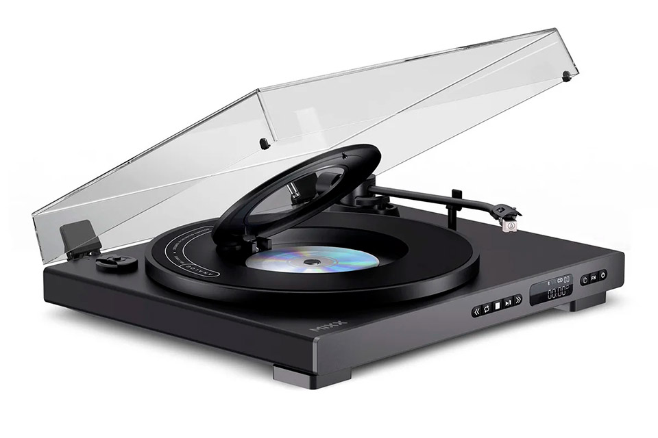 Højdepunkter:• Fuldt automatisk pladespiller med indbygget CD-afspiller• Trådløs Bluetooth-lydstreaming og AUX-udgang • Tonearm med automatisk styring og fjernbetjening inkluderet • Audio-Technica pickup med diamantnål for optimal lydkvalitet • Afspilning ved 33/45 RPM med auto speed control • Kompakt, stilrent design i sort eller hvid • Understøtter CD, CD-R, CD-RW, WAV, MP3 og WMA Klassisk lyd med moderne funktioner:Giv din musiknydelse et løft med denne fuldautomatiske pladespiller med indbygget CD-afspiller. Den kombinerer ægte analog lyd med moderne funktionalitet, så du kan nyde både vinyl og CD’er i ét stilrent system. Med tonearmens automatiske styring kan du afspille, pause, skippe og stoppe direkte på enheden eller via den medfølgende fjernbetjening. Uanset om du vælger 33 eller 45 RPM, leverer systemet en jævn og stabil afspilning, perfekt til både album og singler.Trådløs frihed og fleksible forbindelser:Med indbygget Bluetooth-transmission kan du nemt sende lyden trådløst til dine favorit-højttalere eller høretelefoner. Ønsker du en klassisk opsætning, giver RCA-udgangen og AUX out dig mulighed for direkte tilslutning til dit Hi-Fi-anlæg eller aktive højttalere. Uanset hvordan du foretrækker at lytte, tilbyder denne enhed maksimal fleksibilitet og kompatibilitet.Overlegen lydkvalitet:Den medfølgende Audio-Technica pickup med diamantnål sikrer en præcis og detaljeret gengivelse af dine plader. Den er ideel for både erfarne vinylentusiaster og nye brugere, der vil opleve den varme, autentiske lyd, som kun vinyl kan levere. Samtidig leverer CD-afspilleren klar digital lyd med fuld track-visning, så du altid har styr på afspilningen.Specifications:• Formater: CD, CD-R (audio/data), CD-RW (audio/data)• Understøttede filer: WAV (LPCM), MP3, WMA • Sample rates: 21kHz, 44.1kHz, 48kHz (WAV) • Bit dybde: 16Bit • Frekvensrespons: 20Hz – 20kHz ±2dB • SNR (A-wtd): 80dB • Udgange: RCA line out, Bluetooth audio out • Bluetooth version: 5.3 • Fjernbetjeningsfunktioner: Play, Pause, Skip, Repeat, Stop • Strømforbrug: 2.5W • Strømadapter: DC12V, 1A • Dimensioner: 40.5 x 34 x 9.6 cm • Vægt: 3.57 kg • Tilgængelige farver: Sort og Hvid • Pakningsmål: 48 x 43 x 17.5 cm Produktanmeldelser og links