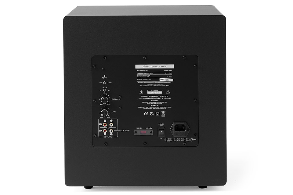 Højdepunkter:• Elegant og kompakt subwoofer med frontvendt laminar bassrefleksdesign• 10" glasfiber-enhed for præcis og dyb basgengivelse • Kraftfuld 300 W Class D forstærker med høj effektivitet • DSP Boost på +3 dB ved 30 Hz for ekstra basrespons • Fleksible tilslutninger med både LFE og stereo-indgange • Automatisk standby-funktion for energibesparelse • Stilrent kabinet med afrundede hjørner og lavt vibrationsniveau Kraft og præcision i kompakt design:Elipson Premium SUB 10 leverer en imponerende kombination af kraft og kontrol, pakket ind i et elegant design. Med sin 10" glasfiber-enhed og en 300 W Class D forstærker får du en basgengivelse, der både er dyb, præcis og fyldig. Den frontvendte laminar bassrefleks sikrer en stabil luftstrøm og minimerer forvrængning, hvilket giver en renere og mere naturlig lydoplevelse. Uanset om du bruger subwooferen til musik eller film, tilfører den en markant forbedring af lydens dybde og realisme.Avancerede funktioner for optimal lydtilpasning:Premium SUB 10 tilbyder fleksible justeringsmuligheder, så den nemt kan integreres i både stereo- og hjemmebiografsystemer. Den variable delefrekvens (40-200 Hz), fasekontrol (0°/180°) og DSP Boost på +3 dB ved 30 Hz gør det muligt at tilpasse lyden perfekt til rummets akustik og dit anlæg. Med både LFE- og stereo-indgange samt stereo-udgang er tilslutningsmulighederne brede, og den automatiske standby-funktion sørger for energieffektiv drift, når subwooferen ikke er i brug.Design og konstruktion med fokus på detaljer:Med sit sorte kabinet, afrundede hjørner og vægt på 18 kg udstråler SUB 10 kvalitet og diskret elegance. Den kompakte form gør den nem at placere, mens den solide konstruktion reducerer resonans og vibrationer. Resultatet er en subwoofer, der ikke kun lyder fantastisk, men også passer harmonisk ind i enhver indretning.Specifications:• Driver: 10" glasfiber• Forstærker: 300 W Class D • Frekvensgang: 27 Hz – 200 Hz (±3 dB) • Variabel delefrekvens: 40 – 200 Hz • Subsonisk filter: 26 Hz / 12 dB/okt • DSP Boost: +3 dB @ 30 Hz • Indgange: Stereo line (low level) + LFE • Udgang: Stereo line (low level) • Dimensioner: 360 x 380 x 430 mm (uden front og fødder) • Vægt: 18 kg Produktanmeldelser og links