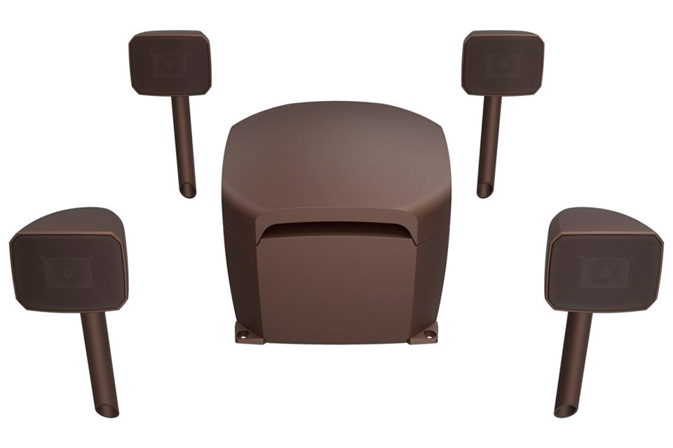 Højdepunkter:• Kraftfuldt 4.1 udendørssystem med fire Tractrix® hornsatellitter og en 10” subwoofer• IPX7-certificeret, tåler regn, sne og sol • Kompakt subwoofer, der kan nedgraves eller monteres over jord • Udvidelsesmulighed op til 8 satellitter og 2 subwoofere • Enkel installation med alt nødvendigt tilbehør inkluderet • Designet til at levere Klipsch’ legendariske lyd i udendørs omgivelser Fyldig og præcis lyd til udendørs brug:Klipsch Courtyard 4.1 er et komplet udendørs lydsystem, designet til at give den autentiske Klipsch-oplevelse i haven, på terrassen eller ved poolområdet. Systemet kombinerer fire orienterbare satellitter med Tractrix® horn og en kraftfuld 10” subwoofer, hvilket sikrer et bredt lydbillede med klar diskant og dyb bas. Hver komponent er nøje tunet for maksimal effektivitet, så du får en balanceret og dynamisk gengivelse – selv i åbne omgivelser.Holdbar konstruktion til al slags vejr:Med IPX7-certificering er Klipsch Courtyard 4.1 bygget til at modstå regn, sne, højtryksrensning og direkte sollys. De robuste satellitter og subwoofer er fremstillet af UV-behandlet ABS og rotostøbt LLDP-materiale, hvilket sikrer lang levetid og farvebestandighed. Uanset klima leverer systemet imponerende lyd året rundt.Nem installation og fleksibel udvidelse:Courtyard 4.1 er udviklet som et komplet "one-box" system, hvor alt nødvendigt udstyr medfølger – herunder jordspyd, beslag, kabler, silikonefyldte wire-nuts, hammerhætte og unbrakonøgle. Systemet kan nemt tilsluttes en AVR’s zone 2 eller et eksternt effekttrin, og det kan udvides med op til otte satellitter og to subwoofere for større udendørsområder. Den kompakte subwoofer kan både graves ned eller placeres synligt for at matche omgivelserne.Forstærk dit Courtyard 4.1 system med: Klipsch Courtyard 2.0 udendørs højttaler udviddelses pakke Specifications:• Frekvensrespons: 35 Hz – 20 kHz (±3 dB)• Effekt (kont./peak): 120 W / 240 W • Maks. lydtryk: 107 dB • Sensitivitet: 86 dB @ 2.83V / 1m • Satellit: 4” polypropylene woofer + 1” aluminium diskant i Tractrix® horn • Subwoofer: 10” polypropylene woofer, nedgravningsvenlig • Impedans: 8 Ohm kompatibel (min. 6 Ohm) • Crossover: 120 Hz (Sub-Sat), 3.0 kHz (Sat Wfr/Twtr) • Kabinetmateriale: UV-behandlet ABS / LLDP • IP-rating: IPX7 • Dimensioner (satellit): 5.75” H x 7.38” W x 7” D • Dimensioner (subwoofer): 12” H x 15” W x 15” D • Vægt: Satellit 1.6 kg, Subwoofer 10.9 kg • Finish: Brun mat Produktanmeldelser og links