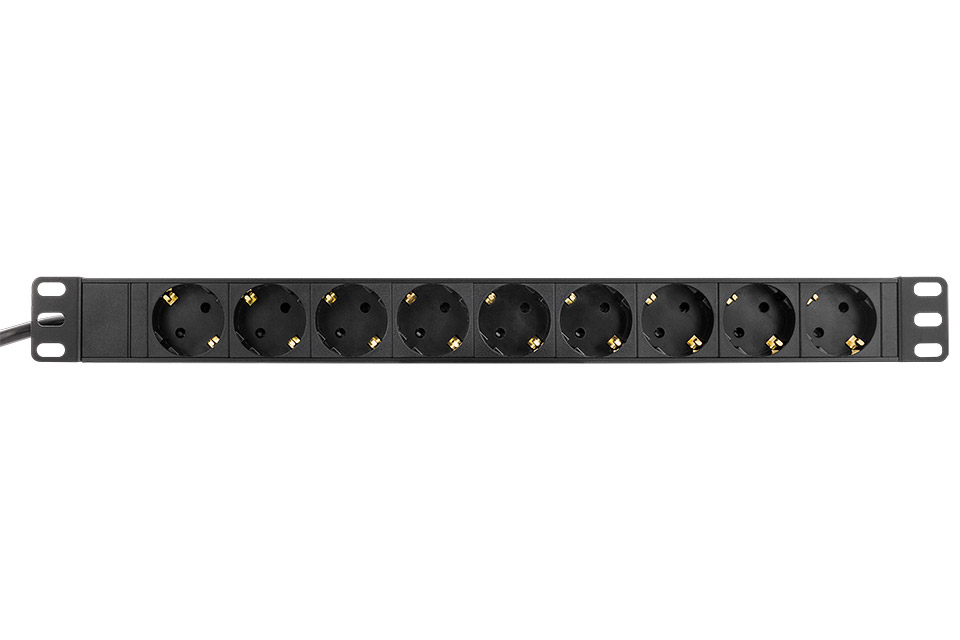 Højdepunkter:• 9 udtag med CEE 7/3 stik• Maks. belastning på 3680W • 2 meter tilslutningskabel med CEE 7/7 stik • Robust 19" 1U grenudtag i sort design • Leveres med monteringssæt og skruer • Børnesikrede udtag for ekstra sikkerhed Effektiv strømfordeling til rackmontering:Dette 19" grenudtag er den ideelle løsning til strømfordeling i rackskabe, serverinstallationer eller AV-systemer. Med 9 udtag i CEE 7/3 standard får du pålidelig strøm til flere enheder samtidigt. Grenudtaget er udstyret med et 2 meter langt kabel og et CEE 7/7 stik, hvilket gør installationen fleksibel og nem. Det sorte aluminiumskabinet giver et professionelt look, samtidig med at det sikrer holdbarhed i mange års brug.Funktionelt design og høj sikkerhed:Udtaget er børnesikret og uden tænd/sluk-knap for at undgå utilsigtet afbrydelse af strømmen. Den maksimale belastning på 3680W og 16A gør den velegnet til kraftige elapparater. Produktet leveres komplet med kurvemøtrikker og M6 skruer, så du kan montere det direkte i dit rack uden ekstra tilbehør. Med 5 års garanti får du desuden tryghed og kvalitet i ét.Specifications:• Antal udtag: 9 stk.• Stiktype: CEE 7/3 • Indgangsstik: CEE 7/7 • Kabellængde: 2 m • Maks. belastning: 3680W • Strømstyrke: 16A • Enhedsstørrelse: 1U (19") • Farve: Sort • Dimensioner (BxHxD): 483 x 68 x 44,4 mm • Materiale: Aluminium • Børnesikring • Overspændingsbeskyttelse: Ingen • Inkluderet tilbehør: Kurvemøtrikker og M6 skruer Produktanmeldelser og links