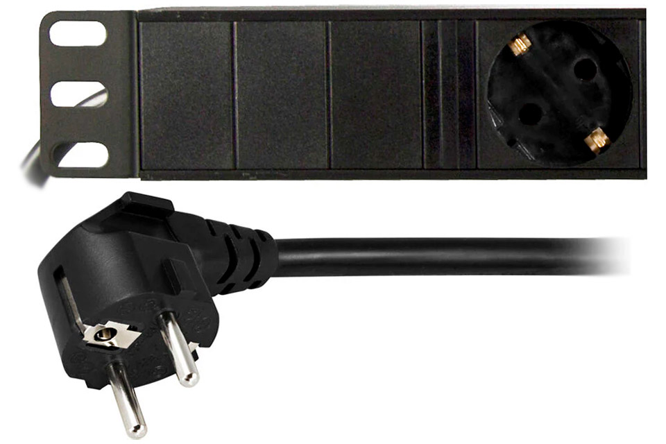 Højdepunkter:• 19" strømskinne til rackmontering• 6 udtag (CEE 7/3) og 1 tilslutning (CEE 7/7) • Robust konstruktion med 3 meter kabel • Understøtter op til 4000W maksimal belastning • Kæledyrsbeskyttet design for ekstra sikkerhed • Inkluderer møtrikker og M6 skruer Effektiv strømfordeling til rackmontering:Denne 19" strømskinne er en pålidelig løsning til strømfordeling i server- og AV-rackinstallationer. Med 6 CEE 7/3 udtag og en CEE 7/7 tilslutning leverer den stabil strøm til flere enheder samtidig. Strømskinnen understøtter op til 4000W, hvilket gør den ideel til både professionelle IT-installationer og avancerede AV-systemer. Det sorte design passer diskret ind i de fleste rackopsætninger og bidrager til et ryddeligt og organiseret miljø.Design og funktionalitet:Strømskinnen er udstyret med et 3 meter langt kabel, som giver fleksibilitet ved montering og tilslutning. Den kompakte 1U højde gør den velegnet til standard 19" rackskabe. Takket være kæledyrsbeskyttet konstruktion og solide materialer opnås høj sikkerhed og lang levetid. Den medfølgende pakke indeholder møtrikker og M6 skruer, så installationen kan udføres nemt og hurtigt.Specifications:• Type: Strømskinne (19")• Antal udtag: 6 x CEE 7/3 • Tilslutning: 1 x CEE 7/7 • Maksimal belastning: 4000W • Kabellængde: 3 meter • Enhedshøjde: 1U • Farve: Sort • Dimensioner (BxDxH): 482,6 x 44,5 x 44,4 mm • Ampere: 16A • Overspændingsbeskyttelse: Ingen • Inkluderet i pakken: Strømskinne, møtrikker og M6 skruer