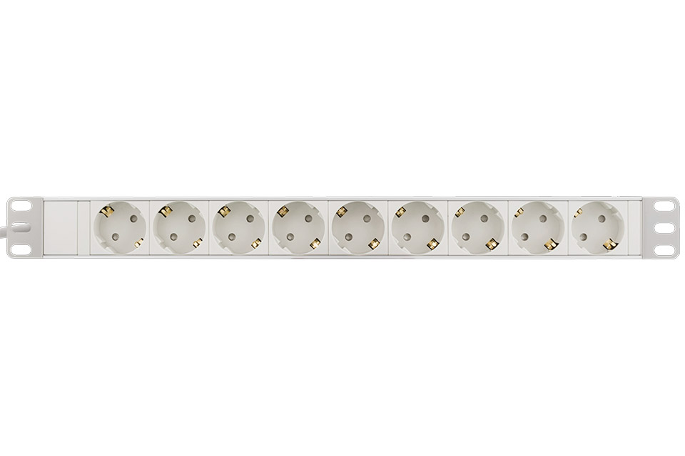 Rack Strømskinne | 3 meter (9x CEE 7/3) | Hvid DEL-GT-8634W: Rack Strømskinne | 3 meter (9x CEE 7/3) | Hvid