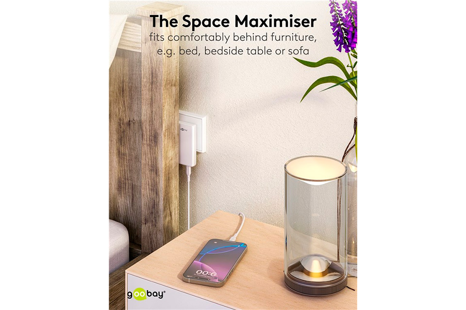 • Ultraflad 90° vinklet oplader, perfekt bag møbler