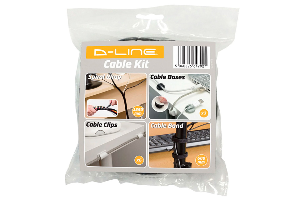 Højdepunkter:• Alt-i-én kabelorganiseringssæt i 11 dele• Indeholder selvklæbende kabeltilbehør • Spiralformet indpakning til flere kabler på 1,25 meter • Velegnet til kabler og ledninger op til 8mm • Inkluderer velcrobånd til fleksibel organisering • Fremstillet af holdbare materialer for lang levetid Effektiv organisering af kabler:Dette komplette kabelorganiseringssæt fra D-Line giver dig en praktisk og elegant løsning til at holde styr på dine kabler. Sættet indeholder 11 dele med selvklæbende kabeltilbehør, der gør det nemt at skabe orden omkring skrivebordet, under TV’et eller bag computeren. Du får tre kabelholdere, seks kabelclips, en spiralformet kabelindpakning og et fleksibelt velcrobånd – alt sammen designet til at sikre en ren og overskuelig kabelføring.Alsidigt og brugervenligt design:Kabelclipsene kan holde kabler og ledninger på op til 8mm i diameter, mens den 1,25 meter lange spiralindpakning gør det muligt at samle flere kabler i én beskyttende enhed. Velcrobåndet giver fleksibilitet til at tilpasse længden og organisere alt fra USB- og opladerkabler til TV-, lyd- og netværkskabler. Alle dele kan nemt klippes og tilpasses efter behov, så du får et skræddersyet system til både hjem og kontor.Holdbar konstruktion:Komponenterne i sættet er fremstillet af slidstærke materialer som SEBS, PVC og LDPE, hvilket sikrer, at de bevarer form og funktion over tid. Dette gør D-Line kabelorganiseringssættet til en pålidelig og langtidsholdbar løsning, der hjælper dig med at bevare orden og beskytte dine kabler mod slitage.Specifications:• Indeholder 11 dele• 3 kabelholdere • 6 kabelclips • 1 spiralindpakning (1,25 m) • 1 velcrobånd • Maks. kabeldiameter: 8mm • Materialer: SEBS, PVC, LDPE • Farve: Sort • Selvklæbende montering