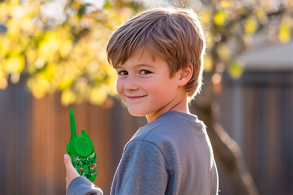 Højdepunkter:• Ikonisk Minecraft design• Let at bruge med push to talk knap • Krystalklar lyd til tydelig kommunikation • Rækkevidde på op til 150 meter • Holdbare og lette materialer, perfekte til leg • Ideel gave til Minecraft fans Eventyrlig kommunikation for børn:Gør legen endnu mere spændende med dette Minecraft Walkie Talkie sæt, der bringer spillets magiske univers til live i virkeligheden. Sættet er inspireret af det ikoniske Minecraft design, så børn straks genkender de karakteristiske figurer og farver. Det er skabt til både indendørs og udendørs brug, hvilket gør det perfekt til eventyr, skattejagt eller rolleleg med vennerne. Den intuitive push to talk funktion gør det let for selv små hænder at sende beskeder, mens den krystalklare lyd sikrer tydelig kommunikation hver gang.Klar til leg, overalt og altid:Med en rækkevidde på op til 150 meter kan børn udforske haven, huset eller legepladsen uden at miste forbindelsen. Walkie talkierne er bygget i let, men robust plast, så de kan tåle både sjov og eventyr. Hver enhed kræver 3 AA batterier (ikke inkluderet), og når først de er sat i, er det bare at starte legen. Dette sæt er den perfekte gaveidé til enhver Minecraft entusiast, der elsker eventyr, fantasi og kommunikation. Med Minecraft Walkie Talkie sættet er der lagt op til timevis af kreativ leg, hvor fantasien ingen grænser kender.Specifications:• Design: Minecraft tema med ikoniske figurer• Funktion: Push to talk • Lyd: Krystalklar kvalitet • Rækkevidde: Op til 150 meter • Strømforsyning: 3 x AA batterier pr. enhed (medfølger ikke) • Materiale: Let og holdbart plast • Anvendelse: Indendørs og udendørs leg