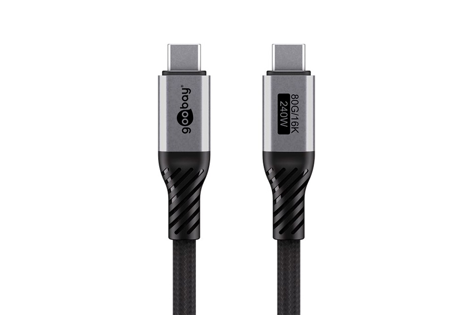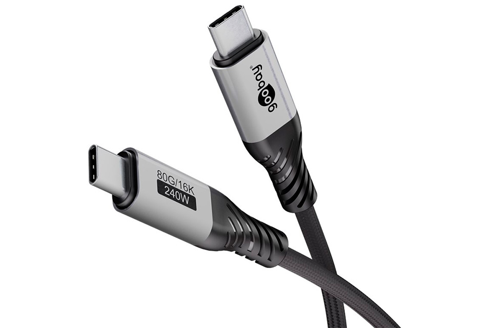 Fremtidssikret USB4 kabel med 80 Gbit/s hastighed, 240 W strøm og fleksibel tekstilfletning til gaming og professionelle opsætninger.