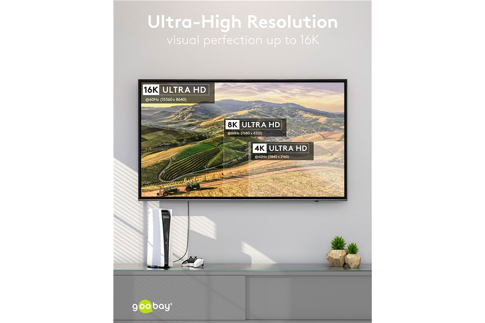 Til de mere kræsne kunder tilbydes der også en Goobay Plus kabelserie, som er i ekstra lækker kvalitet med høj slidstyrke, guldbelagte stik og elegant stofbeklædt finish. Naturligvis stadig til en yderst atraktiv pris i forhold til kvaliteten.