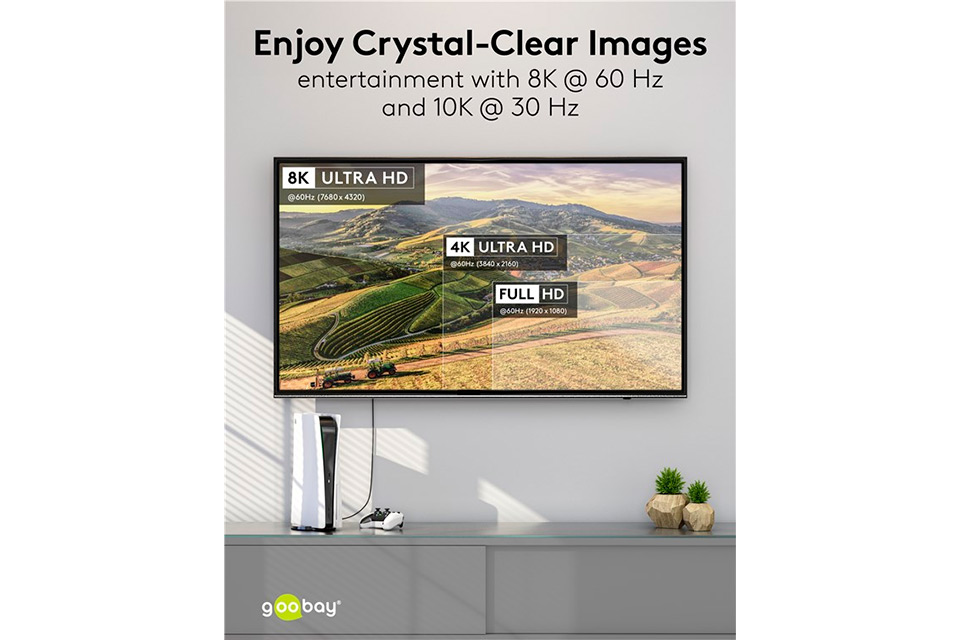Til de mere kræsne kunder tilbydes der også en Goobay Plus kabelserie, som er i ekstra lækker kvalitet med høj slidstyrke, guldbelagte stik og elegant stofbeklædt finish. Naturligvis stadig til en yderst atraktiv pris i forhold til kvaliteten.