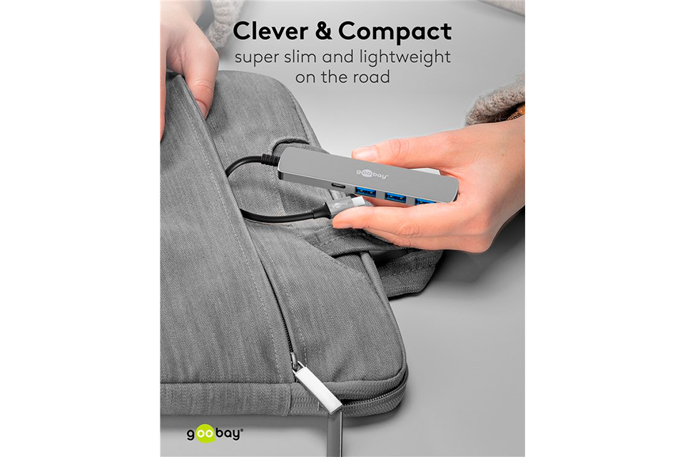4-port USB hub slim med kabel (1x USB-C, 3x USB-A, 5 Gbit/s) GB-79158: 4-port USB hub slim med kabel (1x USB-C, 3x USB-A, 5 Gbit/s)