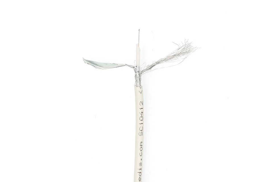 Ultra-tyndt koaksialkabel med dobbeltafskærmning, fleksibelt design og slidstærk PVC-kappe, perfekt til diskret installation og stabil tv-signaloverførsel.