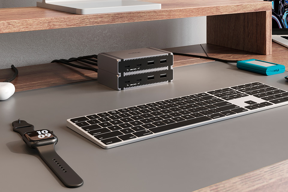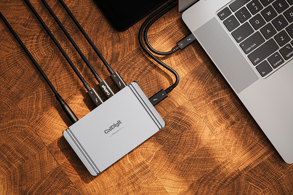 Højdepunkter:• 4x Thunderbolt 5 til lynhurtig 120Gb/s forbindelse• Understøtter op til 3 eksterne skærme på kompatible Windows PC’er • Kompakt hub med hele 9 porte • 90W stabil opladning til laptop • 10Gb/s USB-A og USB-C porte til hurtige SSD’er • Kompatibel med Mac, Windows, iPad og USB-C enheder • Reversibelt design for fleksibel placering Kraftfuld og kompakt Thunderbolt løsning:Element 5 Hub er skabt til brugere der ønsker maksimal ydeevne i et kompakt format. Med hele 4 Thunderbolt 5 porte og op til 120Gb/s båndbredde får du en fremtidssikret løsning der håndterer alt fra hurtige SSD’er til flere højopløselige skærme. Hubben følger samme elegante størrelse som sin forgænger, men tilbyder markant flere porte og langt højere kapacitet. Den stabile 90W opladning sikrer at selv krævende laptops forbliver fuldt drevet, mens du udvider dit workflow med eksterne enheder, skærme, lagring og tilbehør helt uden kompromis.Skabt til maksimal fleksibilitet:Med total kompatibilitet på tværs af Thunderbolt 5, Thunderbolt 4, Thunderbolt 3 Mac, USB4 og USB-C enheder får du en hub der kan bruges til praktisk talt enhver moderne computer, tablet eller telefon. De fire Thunderbolt porte fungerer som et åbent system hvor du frit kan opbygge din egen dock. Uanset om du forbinder flere NVMe SSD’er, et SD-kort interface, docking til kameraudstyr eller et setup med flere 4K skærme, tilbyder Element 5 Hub stabil datakapacitet og ultrahurtig overførsel. Det reversible design gør det nemt at placere hubben præcis hvor den passer bedst i dit setup.Ekstrem hastighed og høj ydelse:Thunderbolt 5 gør Element 5 Hub markant hurtigere end traditionelle USB-hubs. Her får du op til 6,200MB/s ydeevne til eksterne drev, hvilket er op til 17x hurtigere end almindelige USB 5Gb/s hubs. Uanset om du arbejder med store videofiler, komplekse projekter eller krævende programmer, vil den høje båndbredde sikre lynhurtig respons. Alle USB-A og USB-C porte yder 10Gb/s og 7.5W, hvilket gør dem ideelle til hurtige SSD’er og moderne tilbehør. Samtidig aktiverer Bandwidth Boost automatisk når skærme kræver ekstra kapacitet og holder 40Gb/s dedikeret til øvrige enheder.Avanceret skærmunderstøttelse og smart funktionalitet:På kompatible Windows Thunderbolt 5 computere kan du tilslutte op til 3 eksterne skærme, hvilket gør hubben oplagt til professionelle multi-display setups. Mac-brugere får mulighed for et stærkt dual-display miljø afhængigt af model. Hubben understøtter samtidig tablets og telefoner så du kan udvide funktionaliteten på iPad, iPhone og Windows tablets, selv med flere enheder tilsluttet samtidig. Takket være offline opladning kan alle 9 porte desuden bruges som kraftfuld oplader, selv når hubben ikke er forbundet til en computer. Den medfølgende macOS Docking Utility gør det let at ejece alle tilsluttede drev sikkert med ét klik.Specifications:• 1 x Thunderbolt 5 host port op til 120Gb/s• 3 x Thunderbolt 5 porte op til 80Gb/s • 3 x USB-A 10Gb/s • 2 x USB-C 10Gb/s • Host opladning: 90W • Thunderbolt downstream: 15W (5V/3A) • USB-A/C porte: 7.5W (5V/1.5A) • Kompatibilitet: macOS 15, Windows 11, iPadOS, Chrome OS • Understøtter Thunderbolt 5, Thunderbolt 4, Thunderbolt 3 Mac, USB4, USB4 v2 og USB-C • Skærme: Op til 3 eksterne skærme på kompatible Windows Thunderbolt 5 PC’er • Mål: 25.5mm x 70mm x 114mm • Vægt: 0.20kg • Inkluderet: Hub, Thunderbolt 5 kabel 0.8m, gummifødder, 180W strømforsyning, strømkabel Produktanmeldelser og links