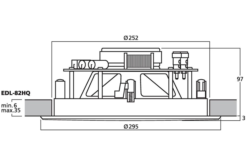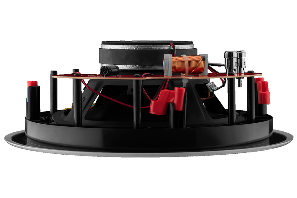 Højdepunkter:• Understøtter både 100 V og 8 Ohm installation• 2-vejs konstruktion med koaksial dome tweeter • Kraftig 8" basenhed med waveguide • Drejelig diskant for optimal lydretning • Magnetisk frontgitter for elegant finish • Velegnet til både væg- og loftmontering Alsidig PA hi-fi højttaler til professionelle installationer:Denne PA hi-fi væg- og loftshøjttaler er udviklet til fleksible lydinstallationer, hvor både lydkvalitet og æstetik spiller en central rolle. Højttaleren kan anvendes i både 100 V anlæg og traditionelle 8 Ohm systemer, hvilket gør den ideel til butikker, restauranter, kontorer, konferencelokaler og offentlige miljøer. Med en RMS-effekt på op til 50 W ved 8 Ohm og flere effekttapninger i 100 V drift får du fuld kontrol over lydniveau og zoner. Den 2-vejs opbygning med koaksial diskant sikrer en balanceret og detaljeret gengivelse af både tale og musik, selv ved lavere lydstyrker.Klar og fyldig lyd i elegant flush-fit design:Højttaleren er udstyret med en kraftig 20 cm basenhed kombineret med en 25 mm silk dome tweeter, som er monteret i et kugleled. Det gør det muligt at dreje diskanten og tilpasse lydretningen præcist efter rummet. Resultatet er en ensartet og behagelig lydspredning. Det slanke design med metalfront og diskret plastkant giver et professionelt og stilrent udtryk, der falder naturligt ind i både moderne og klassiske omgivelser. Det magnetiske frontgitter gør montering og vedligeholdelse nem og hurtig, samtidig med at højttaleren fremstår elegant og diskret.Nem montering og robust konstruktion:Højttaleren er konstrueret til nem installation i både væg og loft med en indbygningsdybde på kun 99 mm. Den passer til materialetykkelser fra 6 til 35 mm, hvilket giver stor fleksibilitet ved montering. Den solide konstruktion og driftssikre komponenter sikrer stabil ydeevne i temperaturer fra 0 til 40 grader. Med en følsomhed på 89 dB leverer højttaleren et klart og kraftfuldt lydbillede, selv i større rum, og er velegnet til både baggrundsmusik og tydelig tale.Specifications:• Drift: 100 V eller 8 Ohm• Effekt RMS: 50 W ved 8 Ohm • Effekt 100 V: 30 W, 16 W, 8 W, 4 W • Peak power: 100 W • Frekvensområde: 30 til 20.000 Hz • Følsomhed: 89 dB/W/m • Basenhed: 8" med waveguide • Diskant: 25 mm silk dome, drejelig • Montering: Væg og loft • Udskæringsdiameter: 252 mm • Indbygningsdybde: 99 mm • Dimensioner: Ø 295 mm x 100 mm • Vægt: Ca. 2 kg • Frontgitter: Magnetisk metalgitter • Materialetykkelse: 6 til 35 mm Produktanmeldelser og links