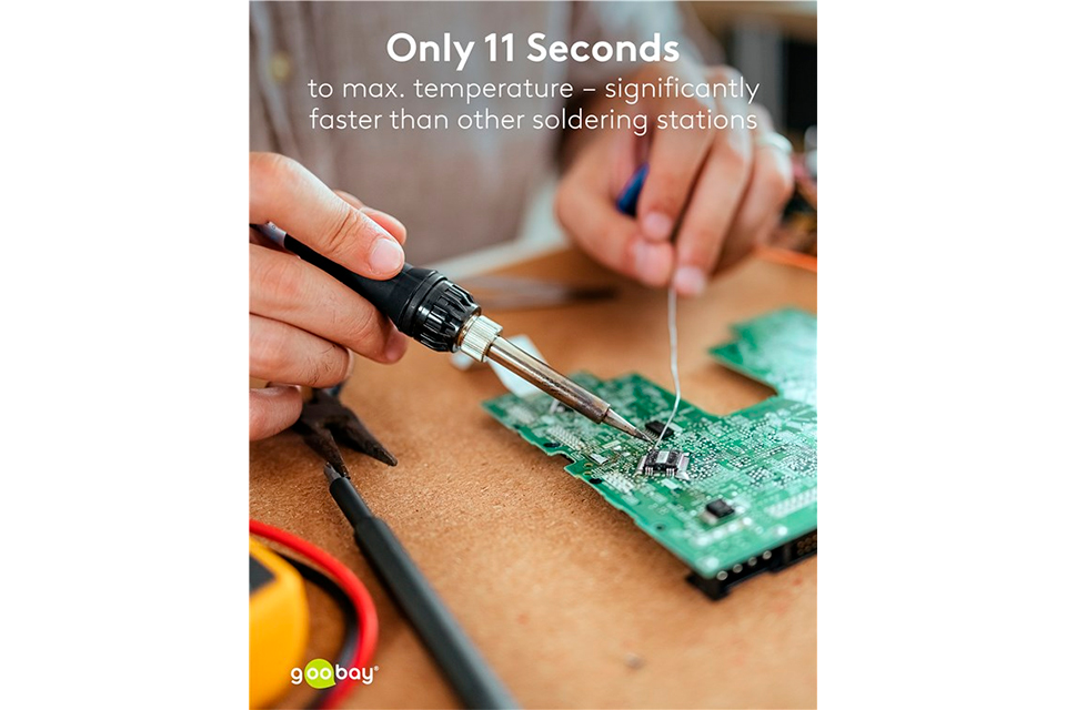 Højdepunkter:• Hurtig opvarmning, klar på 8 sekunder• Præcis temperaturstyring i 1 °C intervaller • Temperaturområde fra 160 til 480 °C • Stor og letlæselig LED display • CH-knap til lagring af favorittemperatur • Robust og slagfast kabinet • Komplet sæt med tilbehør til lodning Hurtig og præcis digital loddekolbestation:Denne digitale loddekolbestation på 70 W er udviklet til brugere, der ønsker hurtig opstart, præcis temperaturkontrol og pålidelig ydeevne. Stationen når loddetemperatur på blot 8 sekunder og maksimal temperatur på kun 11 sekunder, hvilket gør den markant hurtigere end mange traditionelle loddekolbestationer. Det gør arbejdet mere effektivt, uanset om du arbejder med elektronik, modelbygning, reparationer eller kreative projekter som pyrogravering. Den store LED skærm viser både aktuel og indstillet temperatur tydeligt, så du altid har fuld kontrol over processen. Det stilrene design med sort, blank finish passer perfekt ind på både hobbyværkstedet og den professionelle arbejdsplads.Fleksibel temperaturstyring og brugervenligt design:Temperaturen justeres nemt via op og ned knapperne i præcise intervaller på 1 °C, hvilket sikrer optimal kontrol ved arbejde med følsomme komponenter og forskellige loddeopgaver. Med CH-knappen kan du gemme din foretrukne temperatur, så stationen automatisk varmer op til den ønskede indstilling næste gang, du tænder den. Loddekolben leveres med unionsmøtrik, som gør udskiftning af loddespidser hurtig og enkel. Det slagfaste kabinet giver høj holdbarhed og lang levetid, selv ved daglig brug. Medfølgende loddesvamp, rensebørste og loddeholder sikrer en komplet og praktisk løsning klar til brug.Specifications:• Effekt: 70 W• Driftstemperatur: 160 til 480 °C • Temperaturjustering: 1 °C intervaller • Opvarmningstid til loddetemperatur: ca. 8 sekunder • Opvarmningstid til maks. temperatur: ca. 11 sekunder • Display: Stor LED display • Spænding: 220 til 240 V AC • Stiktype: Type E/F • Kabellængde loddekolbe: 1,15 m • Kabellængde strømkabel: 1,15 m • Farve: Sort • Mærkninger: CE, WEEE • Tilbehør: Loddesvamp, rensebørste, loddeholder