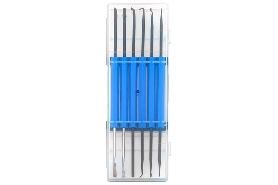 Højdepunkter:• 6 alsidige loddeværktøjer med i alt 12 præcisionsspidser• Ideel til elektronik, printkort, modelbygning og smykkereparation • Dobbelt-sidede værktøjer for maksimal funktionalitet • Belagte og ikke-magnetiske spidser beskytter følsomme komponenter • Sekskantede håndtag giver sikkert greb uden at glide • Kompakt mini-værktøj med høj effektivitet Alsidigt loddeværktøj til præcisionsopgaver:Dette loddeværktøjssæt med 6 dele er designet til dig, der arbejder med elektronik, kredsløb og præcisionsopgaver, hvor almindeligt værktøj ikke slår til. Sættet fungerer som en schweizerkniv til loddearbejde, da hver enhed er dobbeltsidet og samlet giver hele 12 forskellige præcisionsspidser. Uanset om du lodder, reparerer printkort, renser komponenter eller arbejder med modelbygning, får du et værktøjssæt, der gør selv de mest krævende opgaver lettere og mere kontrollerede. Den kompakte størrelse gør værktøjerne nemme at håndtere, samtidig med at de leverer maksimal funktionalitet til både hobbybrug og professionelt arbejde.Skabt til elektronik og følsomme komponenter:Værktøjerne er belagte og ikke-magnetiske, hvilket er afgørende ved arbejde på elektronik og kredsløb. Det forhindrer små metaldele i at sætte sig fast og reducerer risikoen for skader på chips, spoler og andre sarte komponenter. Sættet indeholder blandt andet børster til fjernelse af løse dele, skrabere til korrosion, chipholdere, krog og løfteværktøj til afmontering af komponenter samt værktøj til bukning og formning af ledninger. De sekskantede håndtag sikrer et fast greb og forhindrer, at værktøjet drejer i hånden under arbejdet, hvilket giver højere præcision og bedre arbejdskomfort.Specifications:• Antal værktøjer: 6 stk• Funktioner: 12 dobbeltsidede præcisionsspidser • Indhold: Børster, skrabere, chipholdere, krog, løfteværktøj, skruetrækker, PCB-skærer, afisolering, wire-bøjer • Anvendelse: Lodning, elektronik, printkort, modelbygning, smykkereparation • Overflade: Belagt og ikke-magnetisk • Greb: Sekskantet håndtag • Længde pr. værktøj: Ca. 18,2 cm