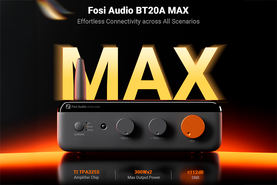 Fosi Audio BTA20A Max Bluetooth stereo forstærker | 48V (2x 300W, 4 Ohm) FA-BT20A-MAX-48V: Fosi Audio BTA20A Max Bluetooth stereo forstærker | 48V (2x 300W, 4 Ohm)
