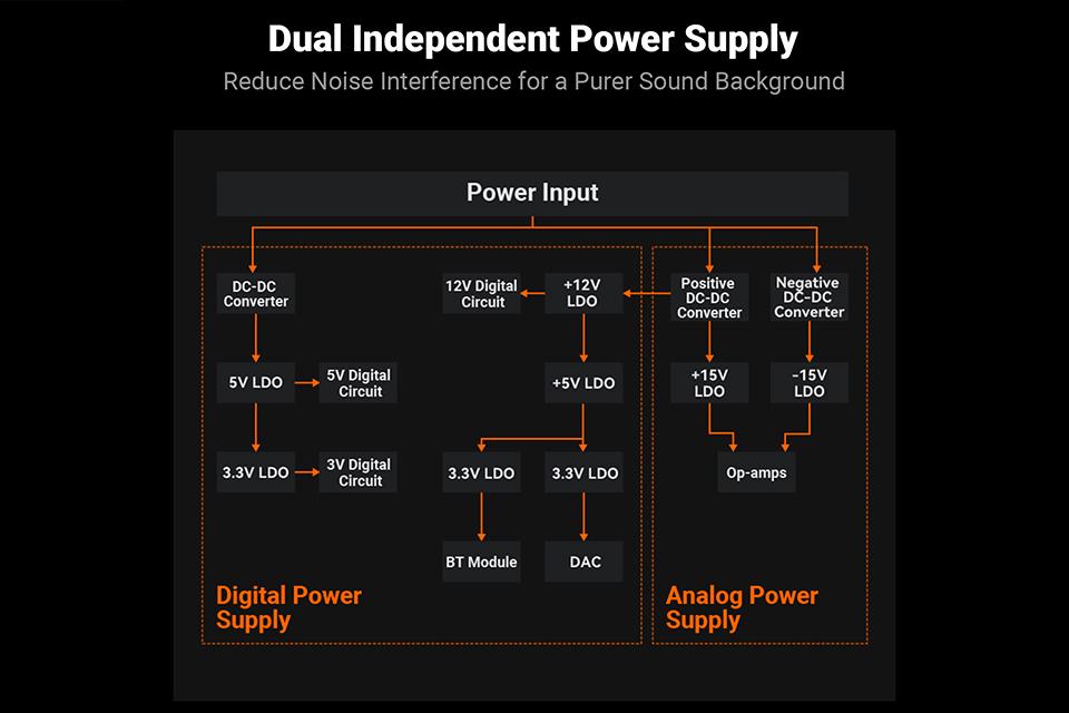 BT20A Max er udstyret med Qualcomm QCC3095 Bluetooth chipset og Bluetooth 6.0, som sikrer stabil forbindelse, lav latency og høj opløsning. Den understøtter et bredt udvalg af hi-res codecs som LDAC, aptX Lossless, aptX Adaptive, aptX HD samt AAC og SBC, hvilket gør den kompatibel med både smartphones, tablets og computere. Med dual RCA indgange og dedikeret subwoofer udgang er det nemt at opbygge et komplet 2.1 hjemme audio system. Den motoriserede analoge volumen potentiometer giver præcis justering via den medfølgende fjernbetjening, mens tone mode giver mulighed for individuel justering af bas og diskant, så lyden kan tilpasses rummet og dine præferencer.