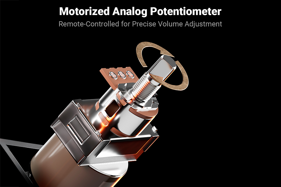 • Fjernbetjening og motoriseret volumen kontrol