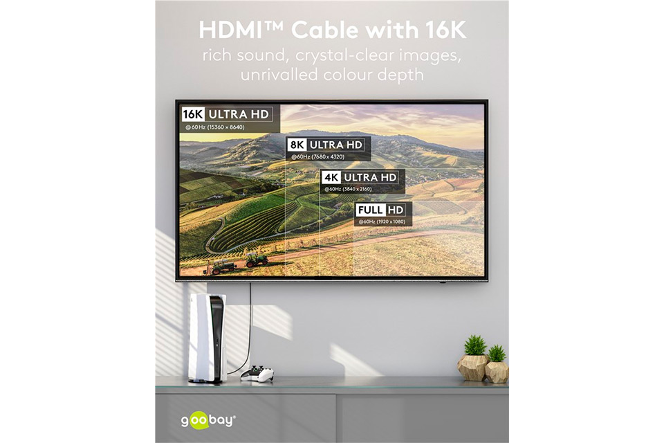Til de mere kræsne kunder tilbydes der også en Goobay Plus kabelserie, som er i ekstra lækker kvalitet med høj slidstyrke, guldbelagte stik og elegant stofbeklædt finish. Naturligvis stadig til en yderst atraktiv pris i forhold til kvaliteten.