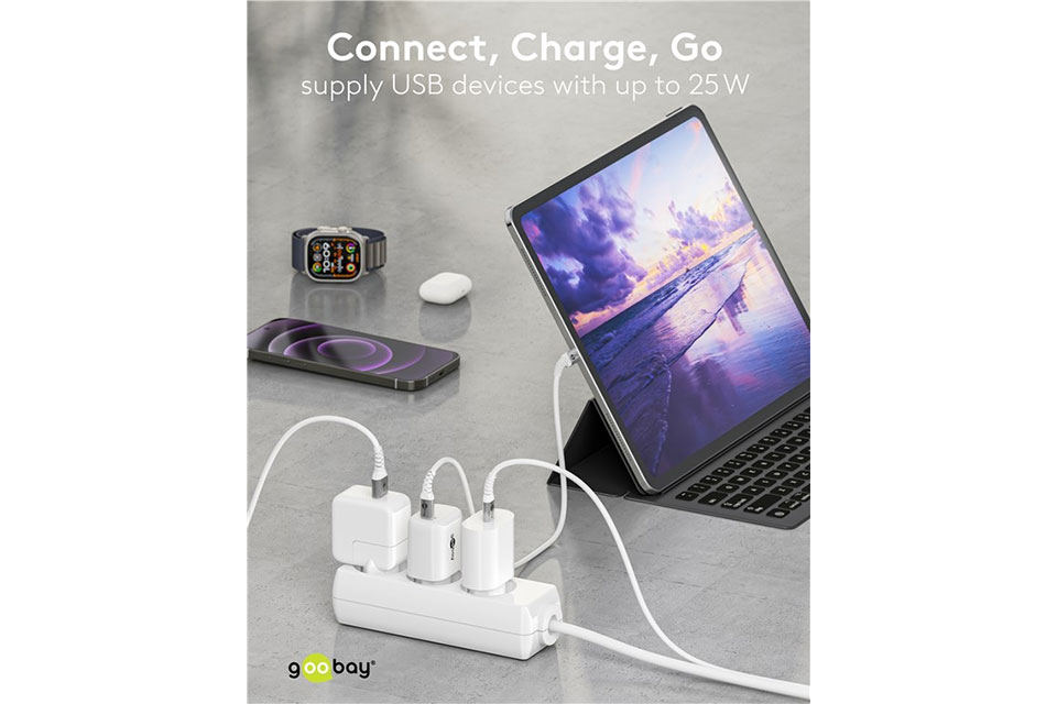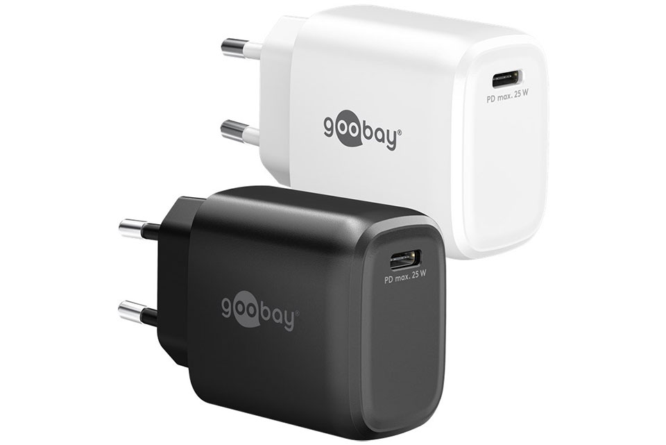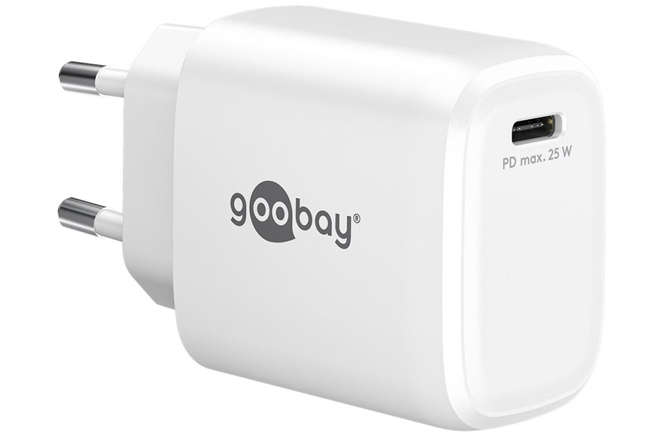Højdepunkter:• 25 W USB-C PD hurtigoplader med GaN teknologi• Op til 4x hurtigere opladning, 0 til 50 % på ca. 30 min • Power Delivery 3.0 med dynamisk og sikker strømtilpasning • Kompakt og let design, perfekt til rejse og hverdag • Bred kompatibilitet med Apple, Samsung, Xiaomi, Huawei, LG og flere • Understøtter PPS for optimeret og effektiv opladning Kompakt 25 W USB-C PD GaN hurtigoplader:Denne USB-C PD GaN hurtigoplader på 25 W er den ideelle løsning til dig, der ønsker effektiv og lynhurtig opladning af dine enheder. Med Power Delivery 3.0 teknologi kan du oplade op til 4 gange hurtigere end med en standard oplader, og opnå 0 til 50 % batteri på cirka 30 minutter, afhængigt af enhed. USB-C opladeren er perfekt til smartphone, tablet, høretelefoner, smartwatch, kamera og bærbare spillekonsoller som Nintendo Switch. GaN teknologi sikrer højere effektivitet, mindre varmeudvikling og et markant mere kompakt design end traditionelle opladere, hvilket gør denne USB-C vægoplader både let og pladsbesparende.Intelligent opladning med maksimal kompatibilitet:Den indbyggede Power Delivery 3.0 funktion med PPS sørger for dynamisk og sikker strømtilpasning, så opladeren automatisk identificerer den optimale effekt til den tilsluttede enhed. Det giver en mere stabil og skånsom opladning samt effektiv beskyttelse mod overopladning, overophedning og kortslutning. USB-C laderen er kompatibel med en lang række enheder og mærker, herunder Apple iPhone, Samsung Galaxy S23, S22, S21 og S20, Xiaomi, Huawei, LG samt tablets som Apple iPad og Samsung Galaxy Tab. Med bred indgangsspænding på 110 til 240 V AC fungerer den både hjemme og på rejser i udlandet, og det kompakte design gør den til en oplagt rejseoplader, der nemt passer i enhver taske.Specifications:• Indgang: 110 til 240 V AC, 50/60 Hz, 1.0 A• Stiktype: Europlug Type C CEE 7/16 • Udgang: USB-C • Maks. effekt: 25 W • Udgang 5.0 V DC, 3.0 A, 15.0 W • Udgang 9.0 V DC, 2.77 A, 25.0 W • PPS 3.3 til 5.9 V DC, 3.0 A, 17.7 W • PPS 3.3 til 11.0 V DC, 2.75 A, 25.0 W • Maks. udgangsstrøm: 3 A • Teknologi: GaN • Power Delivery: 3.0 • Materiale: ABS • Anvendelse: Indendørs Producent beskrivelse - Goobay