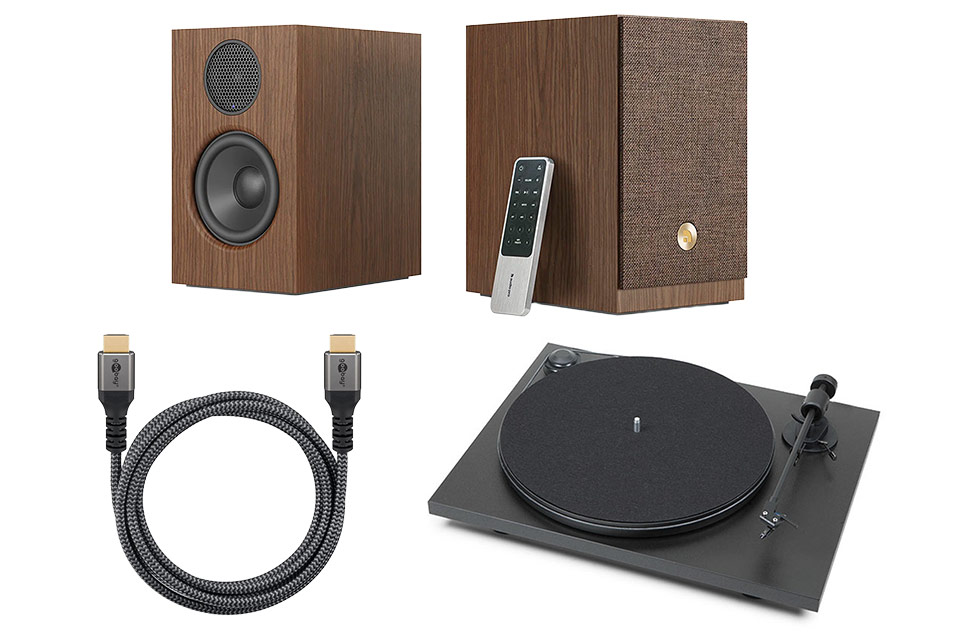 Højdepunkter:• Komplet Hi-Fi anlæg med højttalere, pladespiller og kabel• Aktivt stereosystem med kraftfuld og detaljeret lyd • Indbygget WiFi streaming med AirPlay 2 og Google Cast • Direkte TV tilslutning via HDMI ARC • Plug and play pladespiller med Ortofon pickup • Stabil og fremtidssikret HDMI 2.1 forbindelse • Elegant design der passer ind i moderne hjem Det perfekte begynder Hi-Fi anlæg:Her får du en gennemtænkt løsning til dig, der vil i gang med ægte Hi-Fi uden besvær. Dette bundle samler alt det essentielle i én pakke, så du slipper for at skulle sammensætte et anlæg fra bunden. Kombinationen af aktive stereohøjttalere, pladespiller og HDMI kabel giver dig både klassisk analog lyd og moderne streaming i høj kvalitet. Lyden er markant mere åben og detaljeret end traditionelle soundbars, og du får en ægte stereooplevelse, hvor både musik og film får liv og dybde. Samtidig er opsætningen enkel, så du hurtigt kan komme i gang og nyde din musik.Streaming, TV og moderne funktioner:Med indbygget WiFi streaming får du direkte adgang til populære musiktjenester og trådløs afspilning via både AirPlay 2 og Google Cast. Det betyder, at du nemt kan streame fra din mobil, tablet eller computer uden ekstra udstyr. Tilslutningen til TV er lige så enkel, da højttalerne understøtter HDMI ARC. Det giver dig mulighed for at styre lyden med din TV fjernbetjening og få en langt bedre lydoplevelse til film, serier og gaming. Det medfølgende HDMI 2.1 kabel sikrer maksimal båndbredde og stabil signaloverførsel, så både billede og lyd leveres uden kompromiser.Ægte vinyloplevelse uden besvær:Pladespilleren i dette bundle er skabt til at gøre vinyl nemt og tilgængeligt. Den leveres færdigopsat fra fabrikken, så du undgår kompliceret justering. Med en præcisions tonearm i aluminium og en kvalitets pickup fra Ortofon får du en varm og detaljeret gengivelse, som virkelig fremhæver charmen ved analog lyd. Konstruktionen er fri for plastik og bygger i stedet på solide materialer, der reducerer vibrationer og forbedrer lydkvaliteten. Resultatet er en autentisk lytteoplevelse, hvor du kan genopdage dine plader med imponerende klarhed og dynamik.Produkter inkluderet i bundle: Audio Pro A28 W Multiroom højttalere (Wiim) Pro-Ject Primary E pladespiller | Ortofon OM pickup Goobay Ultra High Speed HDMI 2.1 kabel (8K@60hz) Specifications:• Højttalere: Aktivt stereosystem, 2x75W• Streaming: WiFi, AirPlay 2, Google Cast, Bluetooth • TV tilslutning: HDMI ARC og optisk indgang • Pladespiller: Bæltedrev med Ortofon pickup • Tonearm: Aluminium med høj præcision • Materialer: MDF kabinet og vibrationsdæmpet konstruktion • HDMI kabel: 2.1 standard, op til 48 Gbit/s • Opløsning: Op til 8K 60 Hz og 4K 120 Hz • Lydformater: eARC og ARC understøttelse