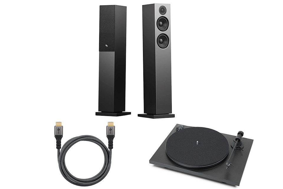 All inclusive Gulvhøjttaler og pladespiller stereo anlægs bundle