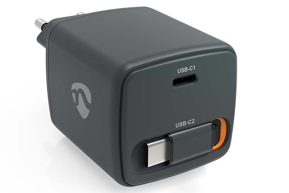 Højdepunkter:• Kompakt vægoplader med USB-C port og udtrækkeligt USB-C kabel• Oplad to enheder samtidig med op til 65 W samlet effekt • Indbygget USB-C Power Delivery for hurtig og effektiv opladning • Udtrækkeligt kabel op til 80 cm, nemt at trække ind igen • PPS teknologi for optimeret og skånsom opladning • Smart Protection System mod overophedning og overspænding • Perfekt til både rejse, kontor og daglig brug Kompakt oplader med maksimal fleksibilitet:Denne kompakte vægoplader er skabt til dig, der ønsker høj ydeevne uden at gå på kompromis med pladsen. Med en samlet effekt på op til 65 W får du en kraftfuld opladningsløsning, der nemt håndterer alt fra smartphones og tablets til bærbare computere med USB-C. Kombinationen af en USB-C port og et integreret, udtrækkeligt USB-C kabel gør det muligt at oplade to enheder samtidig, hvilket gør den ideel både derhjemme og på farten.Det smarte design med det indbyggede kabel giver en ekstra dimension af bekvemmelighed. Kablet kan trækkes ud til cirka 80 cm og rulles automatisk tilbage med et let træk, så du slipper for kabelrod i tasken eller på skrivebordet. Det gør opladeren særligt velegnet til rejser, hvor plads og orden er afgørende. Hurtig opladning med intelligent teknologi:Opladeren understøtter Power Delivery og PPS, hvilket sikrer en hurtig, stabil og effektiv opladning af både Apple og Android enheder. Strømmen justeres dynamisk, så din enhed altid får den optimale mængde energi. Det betyder ikke kun hurtigere opladning, men også en mere skånsom behandling af batteriet over tid.Det indbyggede Smart Protection System sørger for en sikker opladningsoplevelse hver gang. Beskyttelse mod overophedning, overspænding og kortslutning er integreret, så du trygt kan bruge opladeren både hjemme og på rejser. Samtidig genkender opladeren automatisk dine enheder og tilpasser opladningen derefter, hvilket gør den både intelligent og brugervenlig. Specifications:• Effekt: Op til 65 W• Porttype: USB-C • Kabeltype: USB-C udtrækkeligt kabel • Kabellængde: 0.75 m • Indgangsspænding: 100 - 240 V AC 50/60 Hz • Udgangsspænding: 5 V DC, 9 V DC, 12 V DC, 15 V DC, 20 V DC • Maks. udgangsstrøm: 3.25 A • Samtidig opladning: 2 enheder • Teknologi: Power Delivery, PPS, GaN • Stik: Euro / Type-C • Materiale: ABS • Farve: Sort • Dimensioner: 90 x 45 x 42 mm • Vægt: 122 g