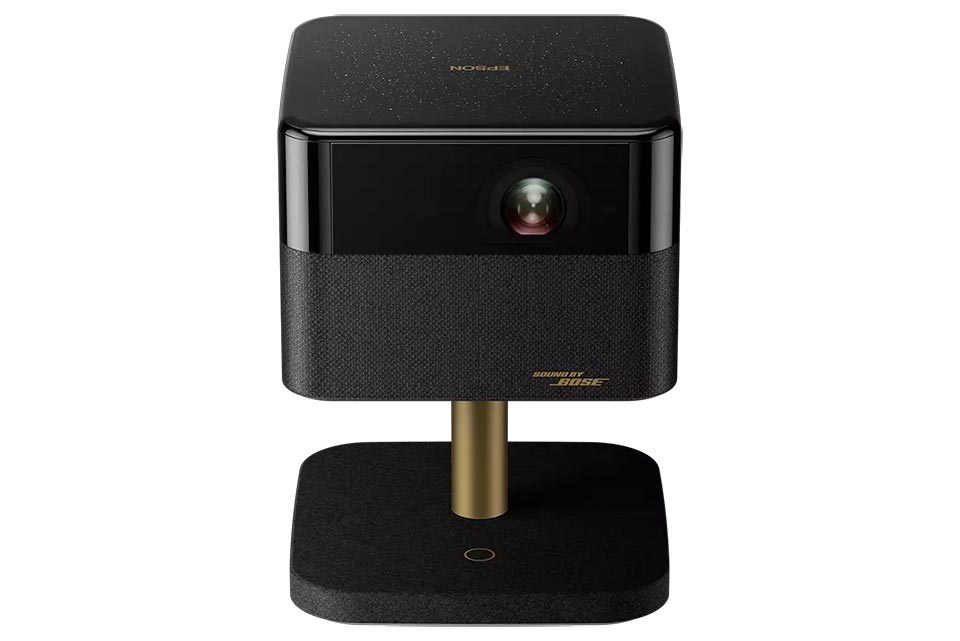 Luksuriøs bærbar projektor med Google TV, Bose lyd og 4K Pro UHD. Nem opsætning, fleksibel stander og stort billede op til 150 tommer.