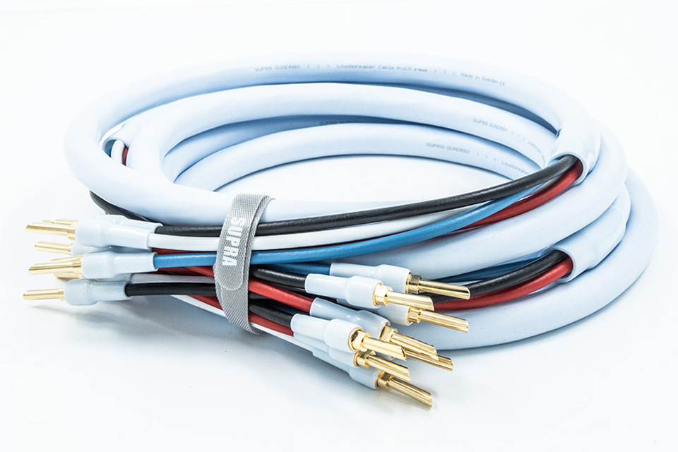 Supra Quandrax højttalerkabel i høj kvalitet i bi-amping udgave (4x2.0 mm2) termineret med stik